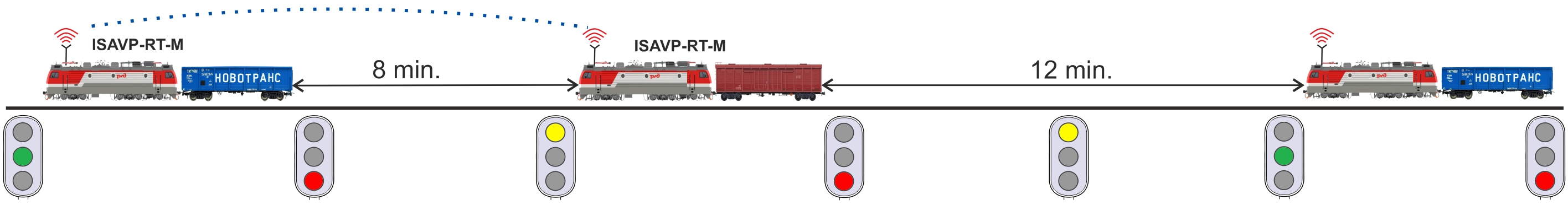 According to technical requirements of OAO ‘RZD’ ‘Virtual Coupling’ autopilot system contains hardware and software for transmitting real-time telemetry from locomotive to RZD servers. This data allows to monitor locomotives in 24/7 mode and helps to control train traffic.