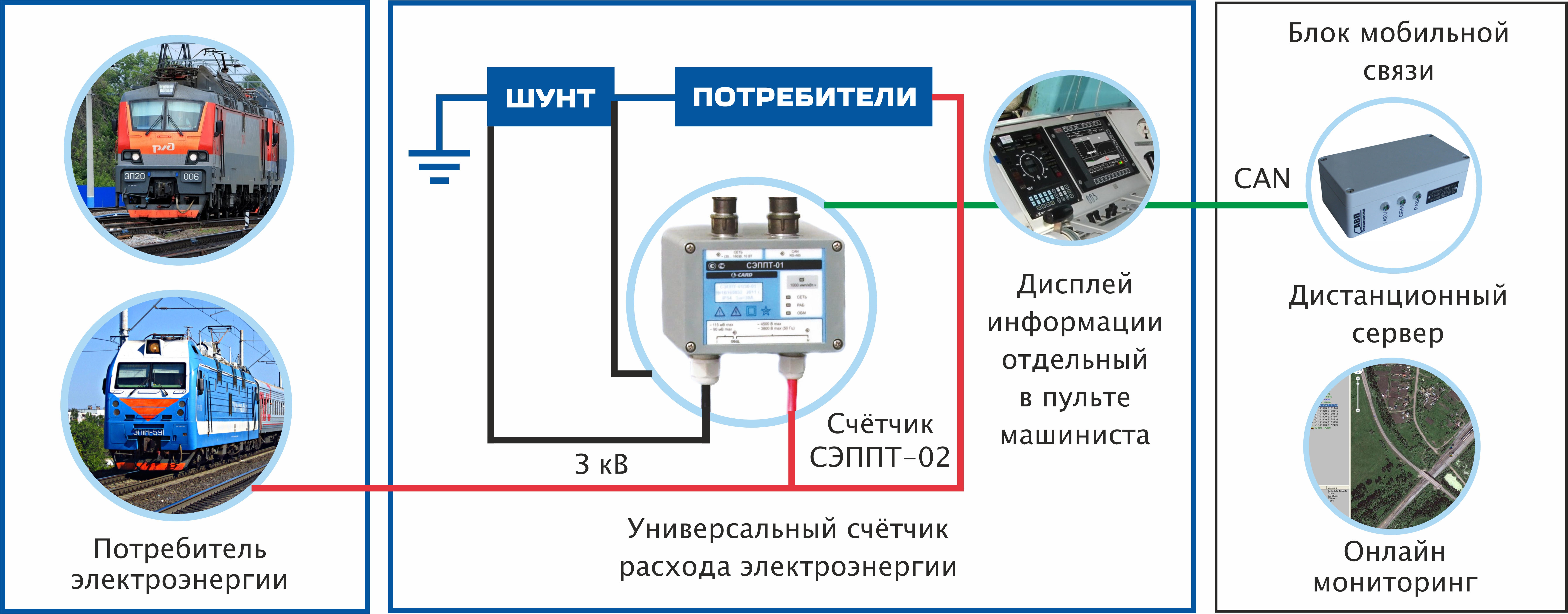 Измерительный комплекс активной, реактивной и полной электроэнергии класса 0,5S со счетчиком СЭППТ для тягового подвижного состава переменного и постоянного тока предназначен для применения на всех типах электровозов.