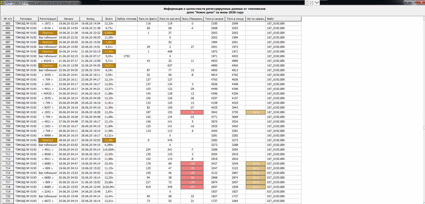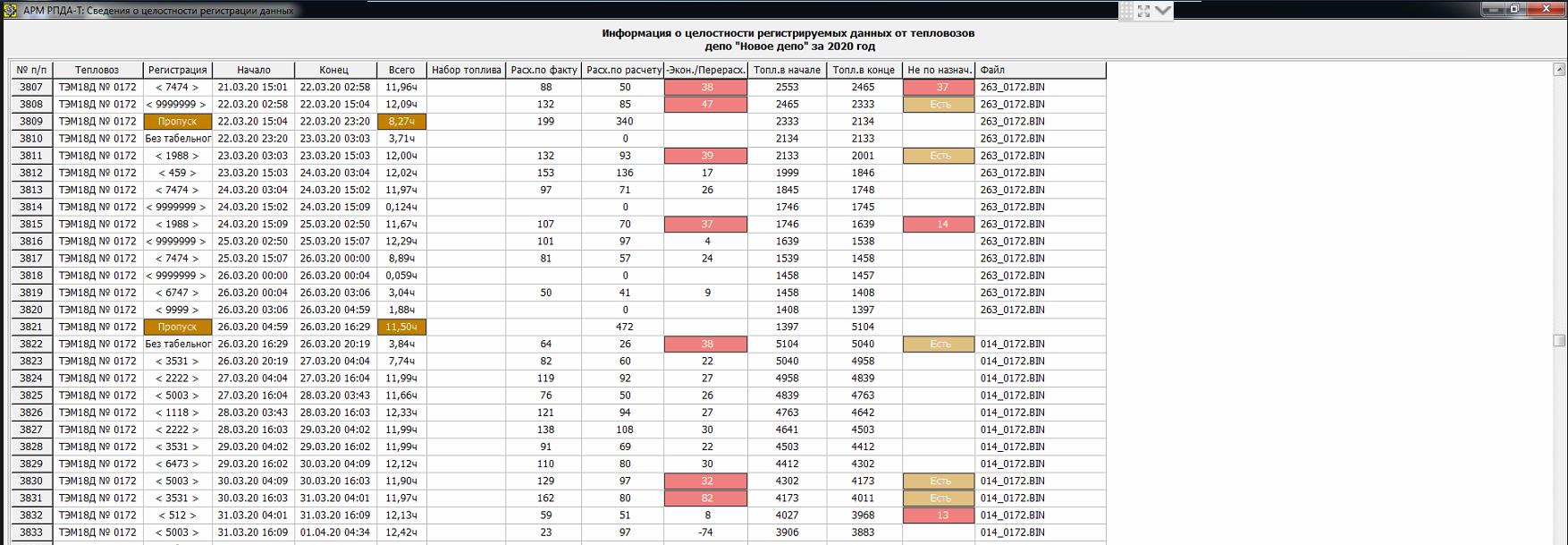 - время работы тепловоза регистрация, работа на ХХ, время стоянки на ХХ. Стоянка на ХХ более 15 мин., время работы САЗДТ, остановка дизеля без САЗДТ;
