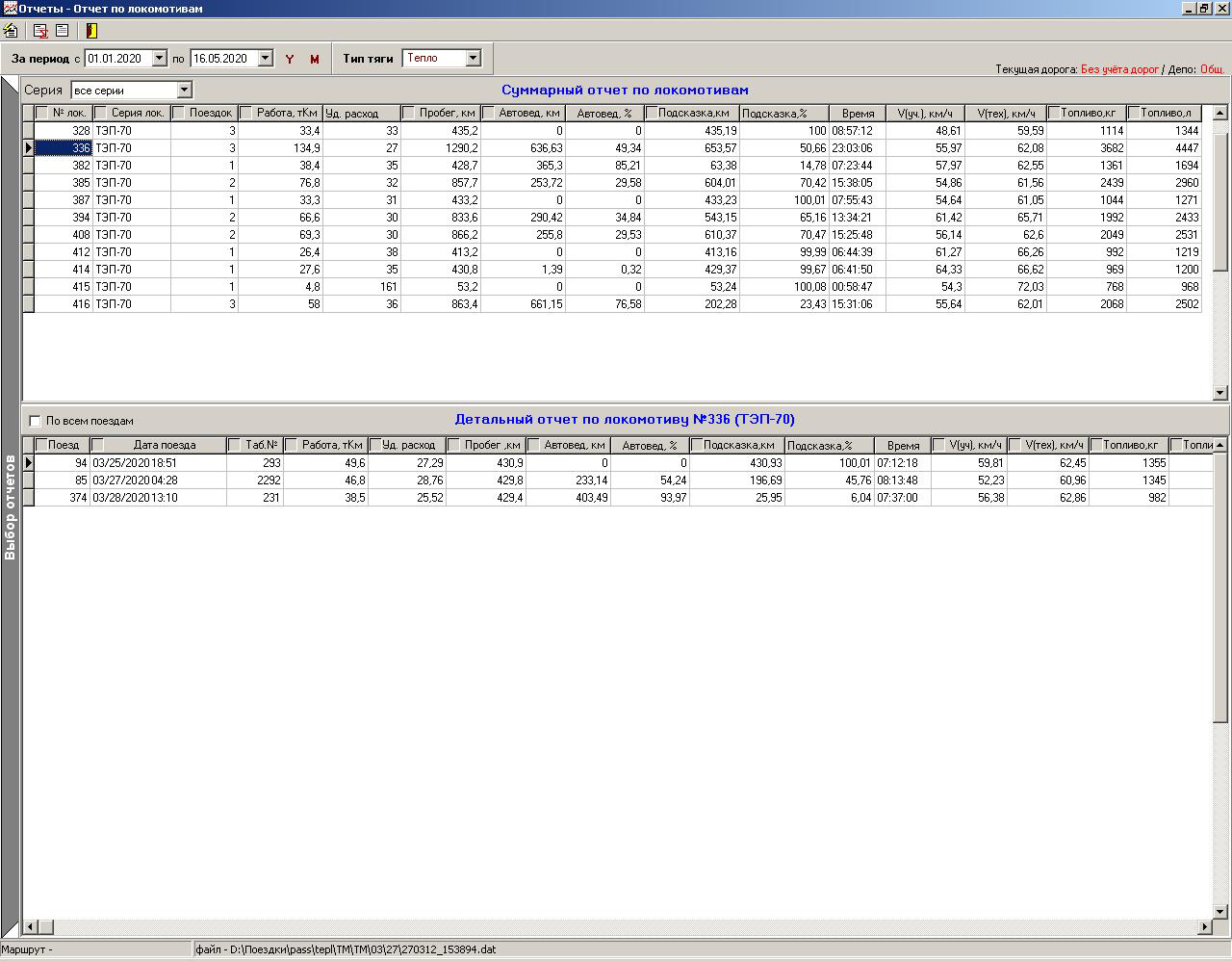 Программное обеспечение АРМ РПДА-Т дает возможность оценить расход дизельного топлива по каждому поездо-участку и по каждому тепловозу, что позволяет определить загрузку каждого тепловоза и оперативно корректировать норму расхода дизельного топлива, с учетом фактически выполняемой работы, а также своевременно направлять тепловозы на реостатные испытания.