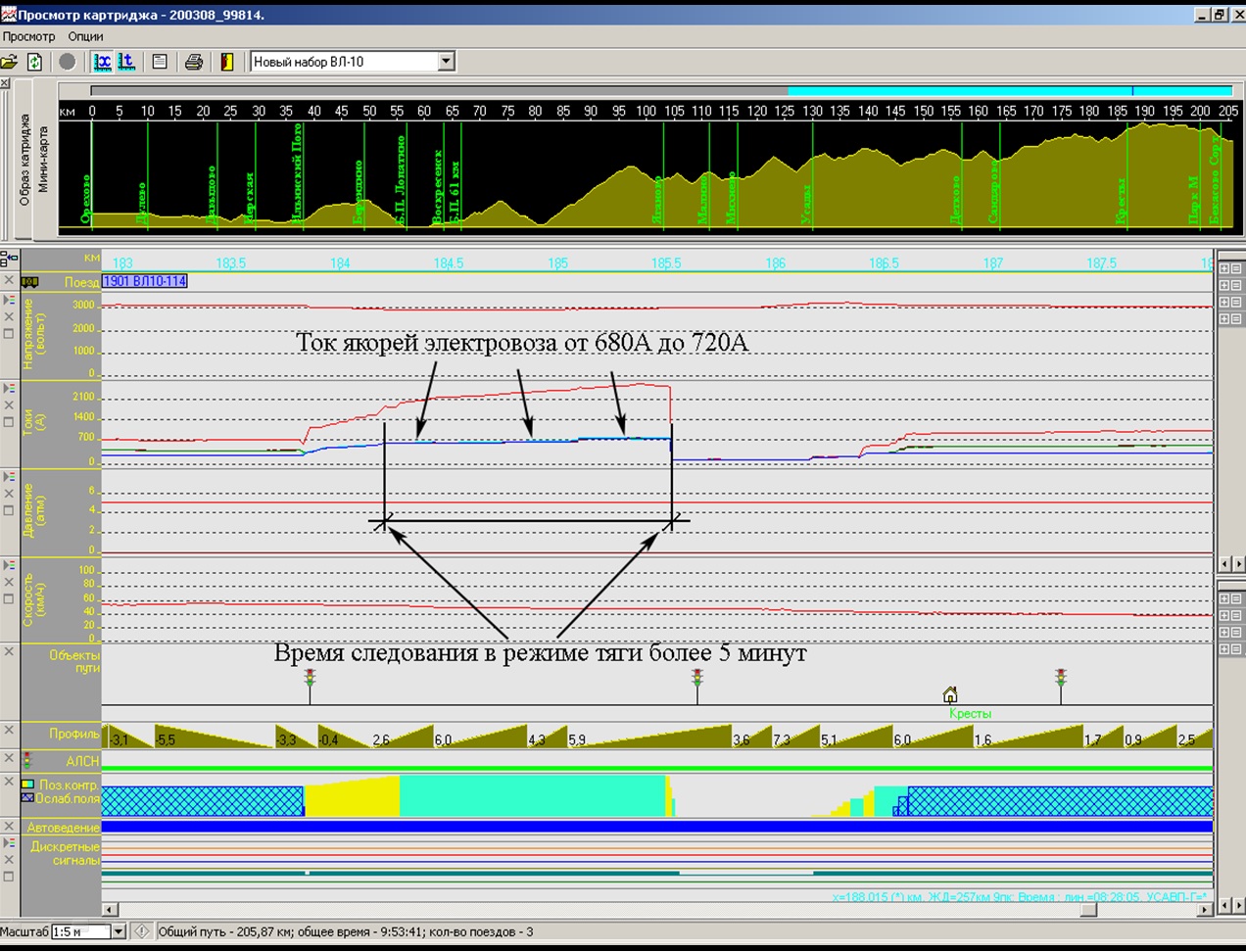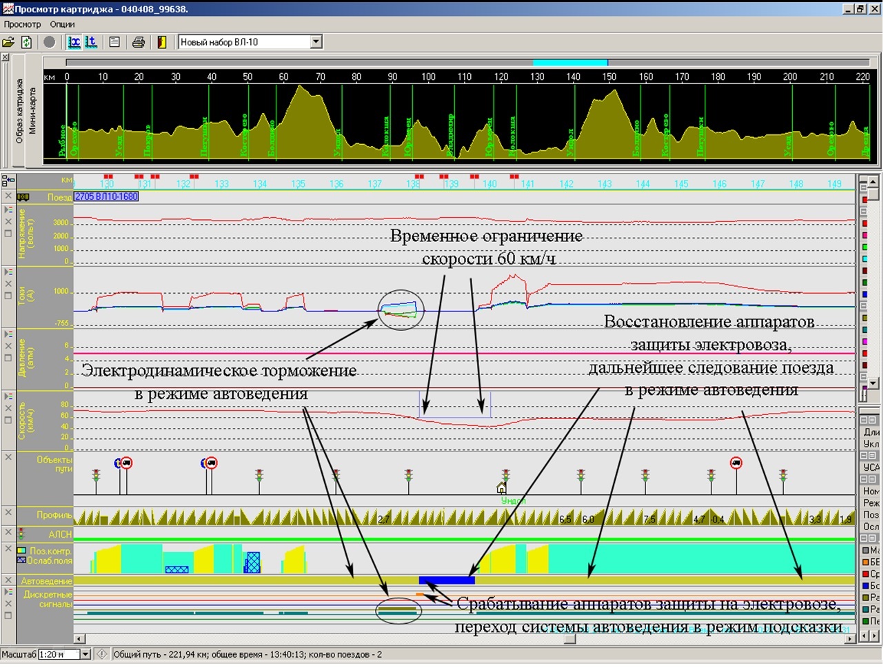 Большое внимание уделяется выявлению неисправностей технического состояния локомотивов, а также систем автоведения и РПДА на основании расшифровки.