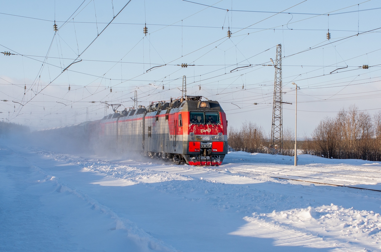Составы с локомотивами 3ЭС5К - 1411, 1023, 1111, 1376 и 1179 - общей массой 26663 тонны проследовали, образуя минимальные интервалы в 9 минут.