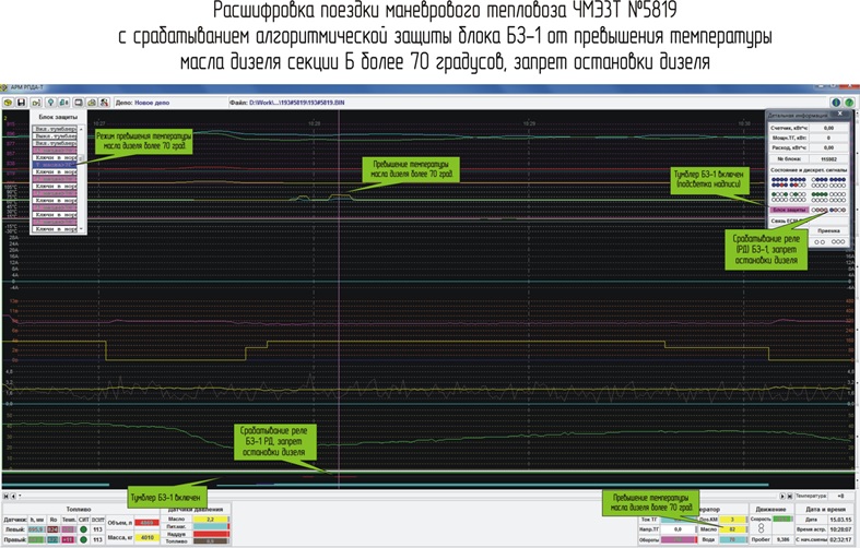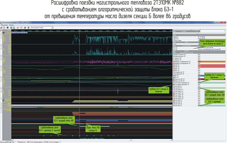 При приближении значений какого-либо параметра к границам допустимого диапазона производится соответствующее защитное воздействие на цепи управления тепловозом (запрет тяги, сброс мощности, запрет остановки дизеля и т.д).