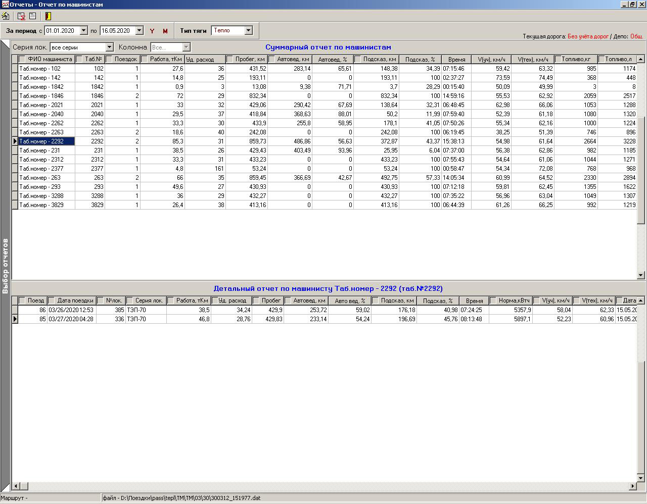 Программное обеспечение АРМ РПДА-Т дает возможность оценить расход дизельного топлива по каждому поездо-участку и по каждому тепловозу, что позволяет определить загрузку каждого тепловоза и оперативно корректировать норму расхода дизельного топлива, с учетом фактически выполняемой работы, а также своевременно направлять тепловозы на реостатные испытания.