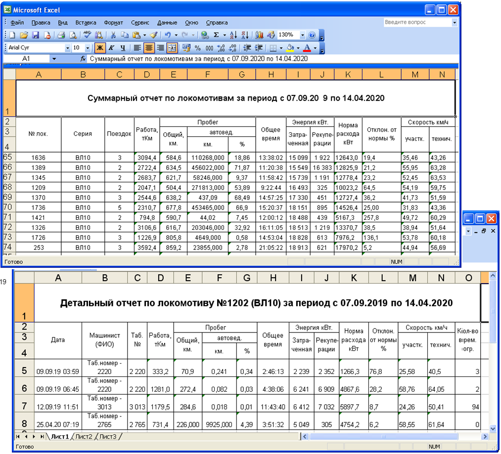 Отчетная форма в виде таблицы АРМ РПДА-Т