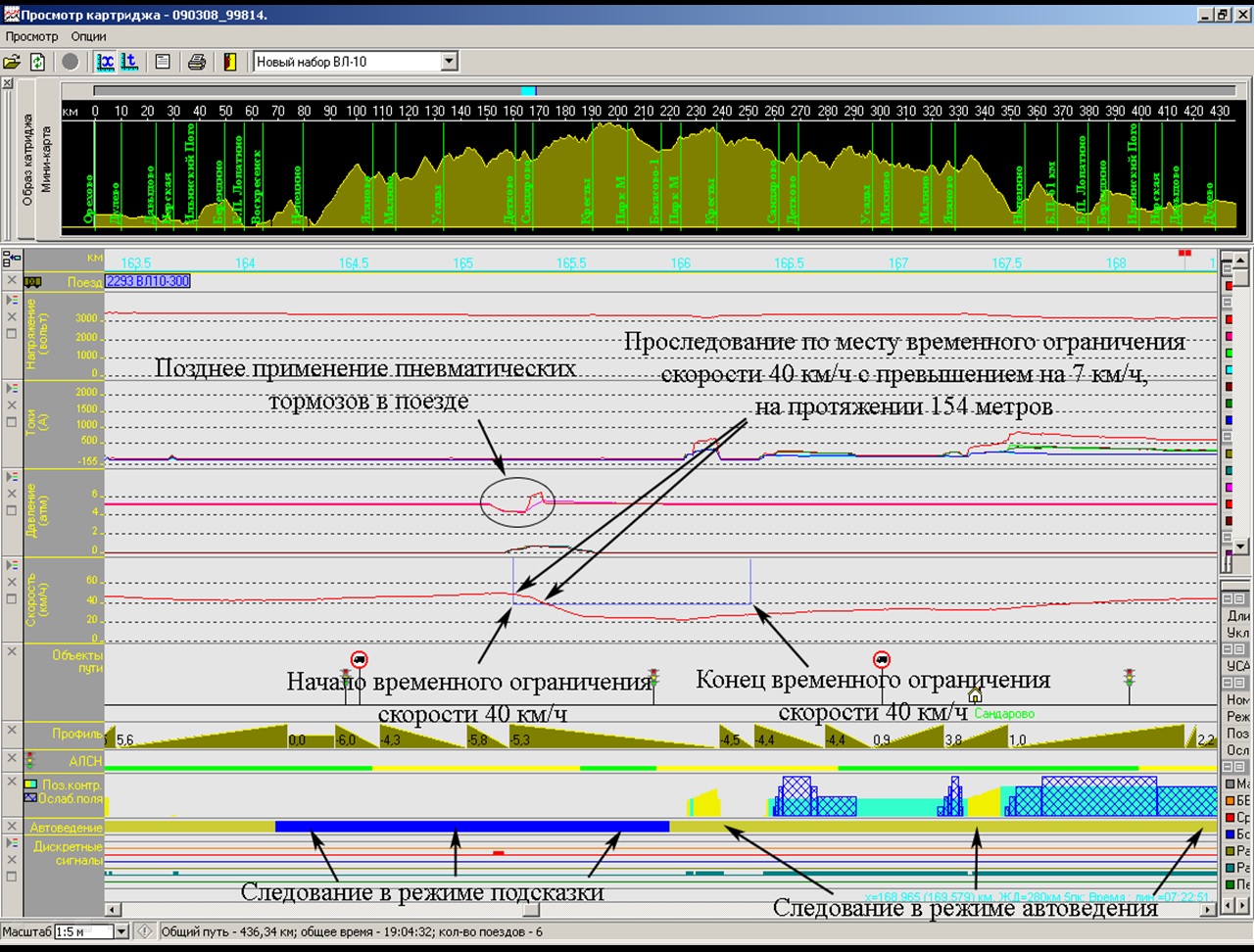Большое внимание уделяется выявлению неисправностей технического состояния локомотивов, а также систем автоведения и РПДА на основании расшифровки.